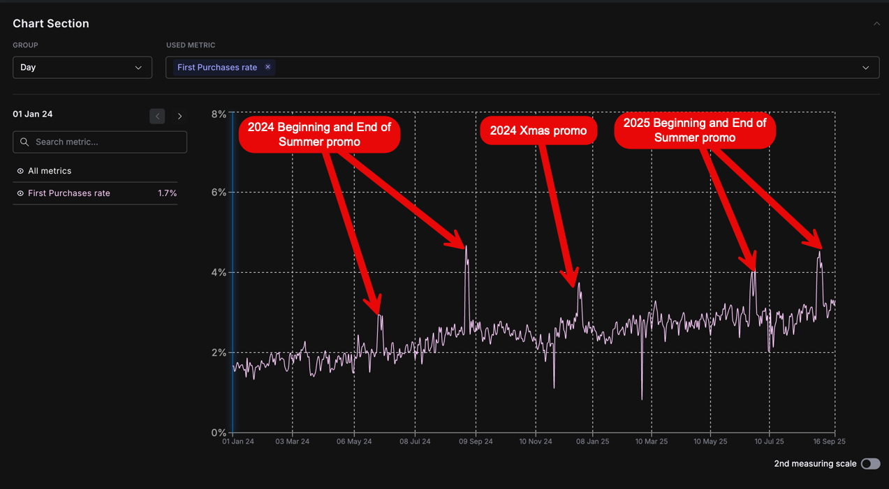 Agility in Promotions: The key is being agile. Taking full advantage of the uptick in conversions during promotions means new customers acquired can drive lasting revenue share growth through continued promotions.